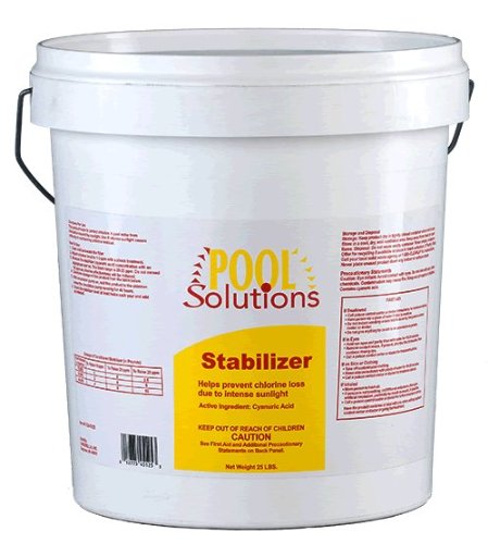 Pool Solution stabilizer helps prevent chlorine loss due to intense sunlight, and cuts chlorine loss by 25%. 25 Lb container Help Prevent Chlorine Loss Due To Intense Sunlight Cuts Chlorine Loss By 25% Complete Instructions for Dosage on Container